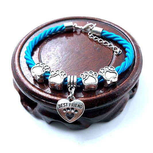 Hand-Woven 8 Colors Rope Chain Bracelet for Women - Best Friend Dog Paw Charm Bracelet for Pet Lovers
