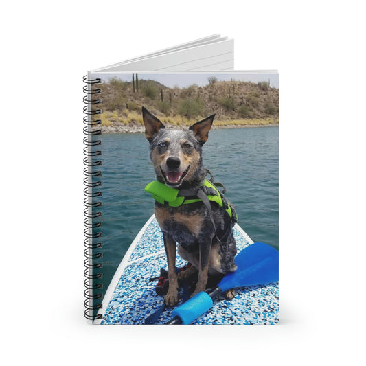 Dog Days at the Lake: Ruled Line Spiral Notebook with an Australian Cattle Dog on a SUP Board