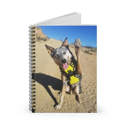 Howdy! Hiking Buddy Ruled Line Spiral Notebook: Australian Cattle Dog Waving on Trail